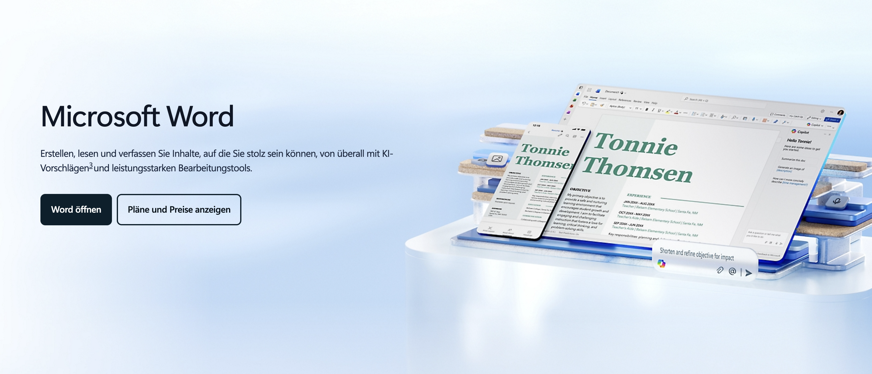 Microsoft 365 Personal erleichtert die Umsetzung Ihrer Projekte mit Design- und Schreibvorschlägen sowie Zugriff auf eine große Auswahl an Vorlagen, Stockfotos, Symbolen und Schriftarten in Word, Excel und PowerPoint und ermöglicht zudem das einfache Teilen von Dateien und Fotos über OneDrive auf verschiedenen Geräten, ohne dass Sie sich dank integrierter Ransomware-Erkennung und -Wiederherstellung sowie der Zwei-Faktor-Authentifizierung im OneDrive Personal Vault Sorgen um die Sicherheit Ihrer Daten machen müssen.